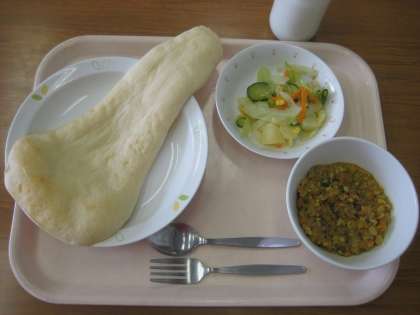 ナン キーマカレー ポテト入りフレンチサラダ 牛乳