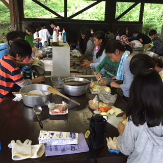 飯盒炊爨にチャレンジしています。薪が湿っていて、なかなか火が点かず、灰まみれになって格闘中です。果たして、カレーライスが食べられるでしょうか?
