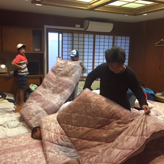 6時に起床し、朝会が終わりました。このあと朝食です。さぁ、雨乞山に登れるのか、最新の天気予報で判断します!