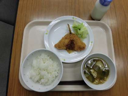ごはん あじフライ きゃべつ 夏野菜のみそ汁 牛乳