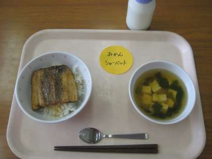 さんまのかば焼き丼 すまし汁 みかんシャーベット 牛乳