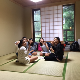 ホテルに到着して、すぐに避難経路を確認しました。その後、係ごとに仕事内容の確認をし、お風呂タイムまで部屋で楽しく過ごしています。もちろん、羽目をはずすことは無いと信じていますが…