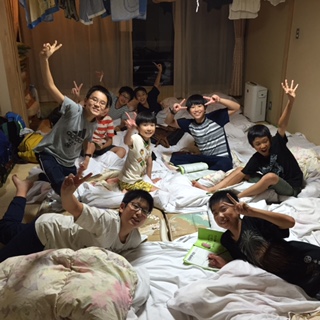 検温をして、寝る支度をしています。室長会議での連絡事項もしっかり伝えています。かなり興奮していますが、果たして静かに寝られるのでしょうか?