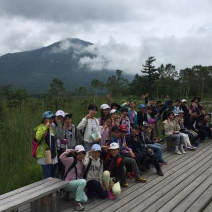 戦場ヶ原を歩いています。男体山も顔を出し、絶好のハイキング日和となりました。もう少しで、お弁当タイムです!