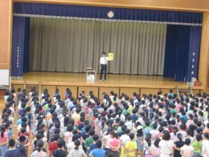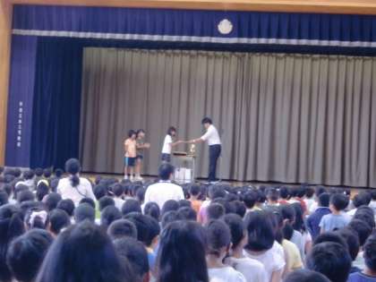 今日は9月の土曜授業日です。朝は体育館で土曜朝会がありました。校長先生からは「道徳」についての話がありました。また、夏休みに頑張った子供たちの表彰もありました。