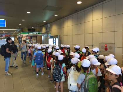 今日は、多摩動物公園まで遠足に行きます。学校での出発式が終わり、これから電車に乗り込みます!