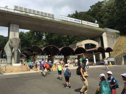 多摩動物公園に到着し、記念写真を撮りました。いよいよ入場です!