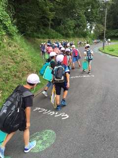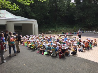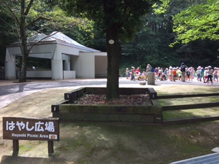 動物の足跡を追いながら、はやし広場までやってきました。これから班行動になります。探検ボードを持って、出発です!