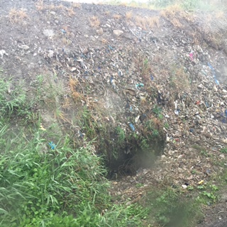 雨だったので、バスの中から埋立地の様子を見学しました!