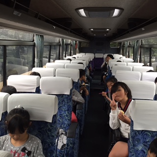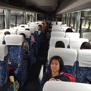 潮風公園の駐車場に到着しました。雨が降っているので、バスの中でのお弁当タイムとなりました!