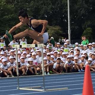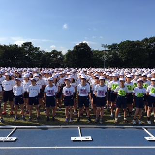 今日は、世田谷区総合運動場で6年生の連合運動会が行われています。開会式のあと、日本大学陸上部の選手によるデモンストレーションがあり、これからウォーミングアップをして競技が始まります!