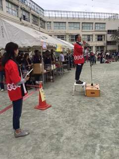 今日は、子どもたちが楽しみにしていた明正小まつり。エイサーの踊りでスタートしました。始まって30分で、各コーナーに行列ができるほど大盛況です!