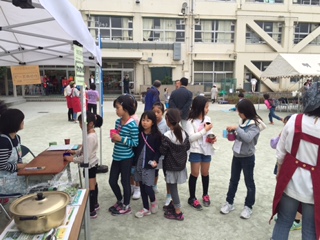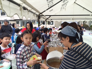 カレーライスやわかめスープ、お餅コーナーに行列ができ始めました。だんだんお腹が減ってきました。