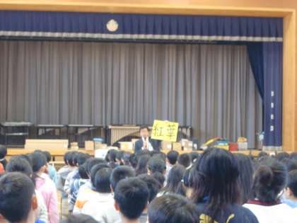 今朝は校庭と体育館でそれぞれ高学年朝会と低学年体育朝会がありました。高学年朝会では校長先生から「紅葉」という言葉について話を聞きました。校庭の低学年体育朝会では短縄の持ち方から跳び方までを学びました。