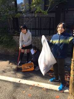 毎年、この時期になると、6年生が成城のまちに出て、落ち葉掃きを行っています。今日は、先日の3.4組に続き、1.2組の子どもたちが、ビニール袋いっぱいに落ち葉を集めていました。これからも地域の一員として、活躍してくれると嬉しいです!