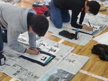 3,4校時、6年生は体育館で書き初めを行っていました。集中して筆をすすめている姿は、さすが6年生!という様子でした。