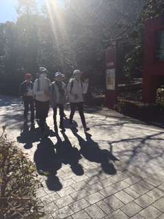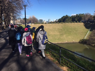 国会議事堂から科学技術館まで、お堀に沿って班単位で歩いています。天気が良くて、気持ちがいいです!