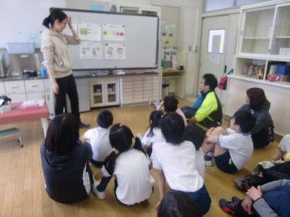 1時間目、保健室ではひまわり学級の発育測定がありました。養護教諭からの保健指導では「かむ力」について話があり、実際にガムを噛んで、それぞれのかむ力の確認をしました。