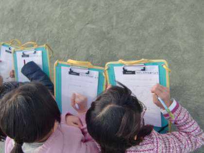 4年生は1年間、自分の決めた木の観察を続けてきました。今回は冬の木ということで、それぞれ絵を書き、気付いたことをまとめていました。