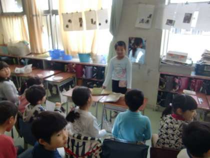土曜日に行う「いえのおしごとはっぴょうかい」に向けて1年生のクラスでは発表リハーサルが行われていました。それぞれ名人になったお仕事について発表をします。1年生の成長ぶりも見どころの一つです。