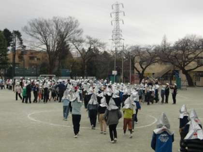 今日は1月の避難訓練がありました。学校公開期間ではありましたが、静かにきまりを守って集合することができていました。