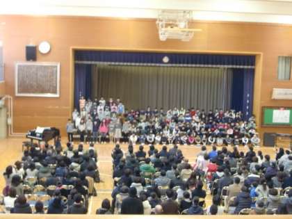 体育館では4年生の二分の一成人式がありました。10才の成長を保護者の方々にも見ていただきました。