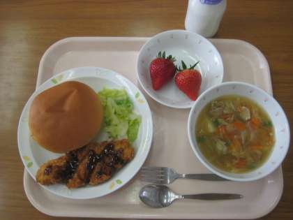セルフフィッシュサンド 牛乳 白いんげん豆の田舎風スープ いちご