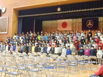 5,6時間目、金曜日に行われる卒業式の予行練習がありました。5年生も6年生も本番さながらに頑張っていました。