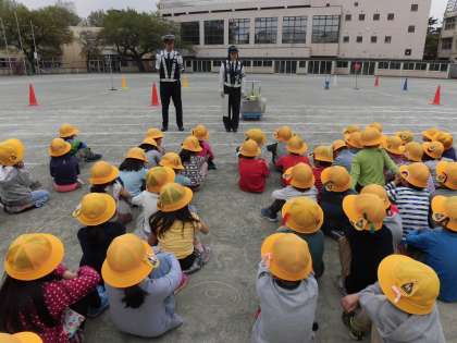 警察の方に、信号がある場所の渡り方や歩道の歩き方について教えていただきました。