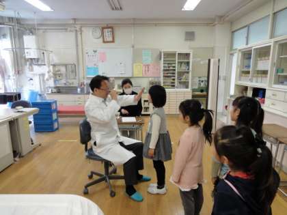 今日は午前中に眼科検診がありました。1年生も健康診断にだいぶ慣れてきた様子です。校医さんに自分の名前をはっきりと言えるようになりました。