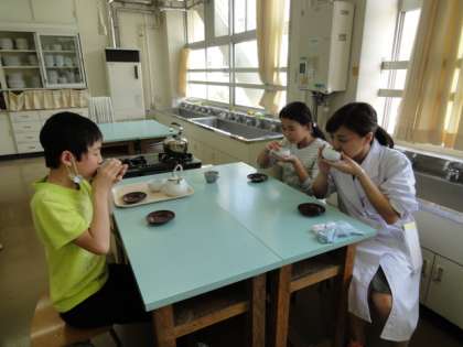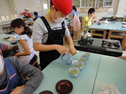 5年生は新しく家庭科の学習が始まりました。今日は、ガスコンロを使ってお湯を沸かし、急須で日本茶を入れました。楽しいティータイムになりました。
