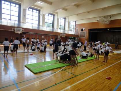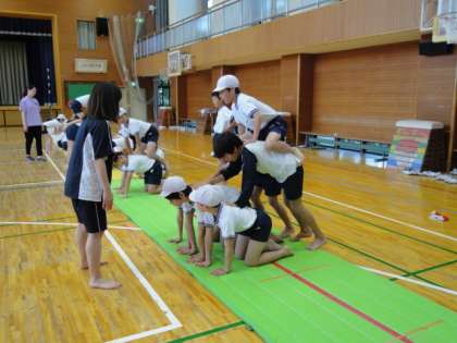 6年生は、運動会で組体操に挑戦します。今日から朝練が始まりました。難しい技もありますが、みんなで声をかけ合い協力して取り組んでいます。