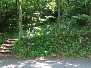 班ごとに、チェックポイントでクイズを解きながら、山の中を歩いています。もう少しで、お弁当タイムです!