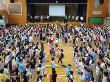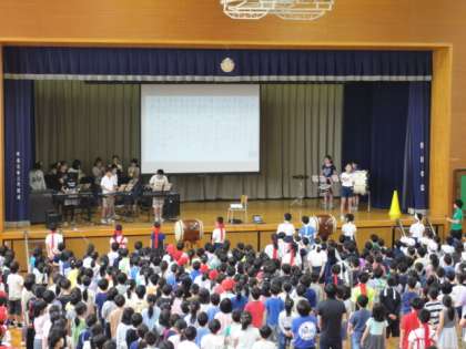 運動会に向けて、「明正小学校 運動会のうた」と「ゴーゴーゴー」を練習しました。