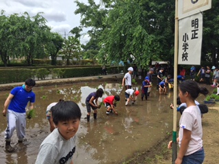 今日は次太夫堀公園まで、田植えに行ってきました。苗を3本ずつ束にして植えていきました。最初はぎこちなかったものの、何度か植えているうちに慣れた手つきへと変わっていきました。稲刈りは10月11日の予定です。たくさん収穫できるといいですね!