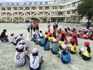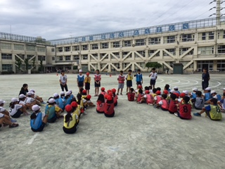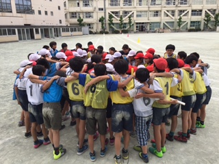 運動会の最終得点種目は、高学年リレーです。これまで、給食準備の時間や放課後に練習を重ねてきました。終わりに各チームのリーダーからひとことずつ挨拶があり、全員で円陣を組んでのかけ声で最後の練習を締めくくりました。明後日の本番、力強い走り、バトンパス、チームワークの良さにご期待ください!