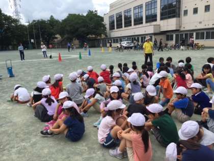 今日から、3日間の学校公開を行っています。その中で、3年生は安全な自転車の乗り方について、警察の方から教えていただきました。暑い中、お母さん方にもお手伝いいただき、全員が大切なことを学べました!