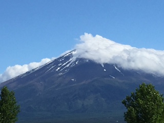 霧の中の静岡から、晴天の山梨に戻ってきました。みんなの願いが通じたのか、富士山も立派な姿を見せています。夕食後は、待ちに待ったキャンプファイヤーです!