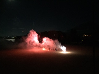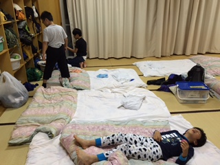 キャンプファイヤーのあと、花火を見て、寝る支度を始めました。今日は、早く静かに寝てくれるといいのですが・・・。おやすみなさい!
