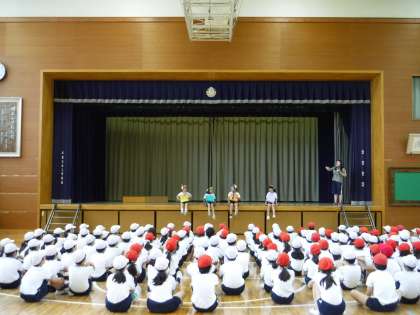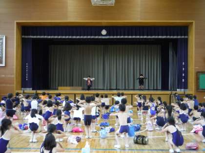 今日から水泳指導期間が始まりました。水温が低くてプールには入れませんでしたが、体育館でプール開きを行いました。安全に配慮しながら、泳力を高めていきたいと思います。