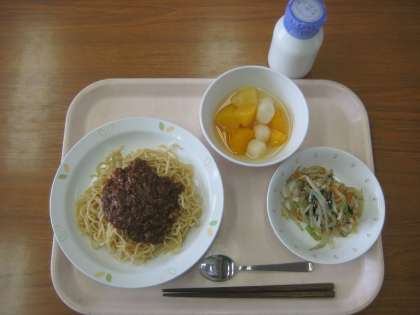 ジャージャーめん 牛乳 ナムル フルーツ白玉