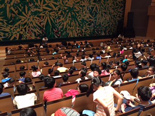 素晴らしいホールの特等席で、ミュージカル「嵐の中の子どもたち」を堪能しました。これから、お弁当を食べに駒沢公園まで歩きます!