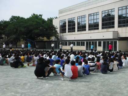 今朝は、登校時間中の地震発生を想定した避難訓練を行いました。災害はいつどこで起こるか分かりません。ご家庭でも、様々な場面を想定して、相談・確認しておいていただくようお願いします。