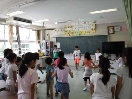 昼休みに、たてわり班で室内遊びをしました。宝探しやだるまさんが転んだなど、工夫して楽しく過ごしていました。