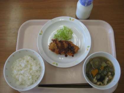 ごはん 牛乳 あじフライ キャベツ 夏野菜のみそ汁