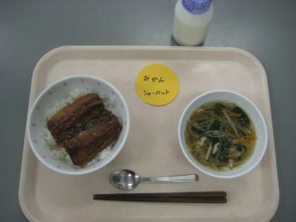 さんまのかば焼き丼 牛乳 沢煮椀 みかんシャーベット