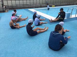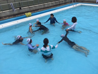 今日から、ひまわり学級の水泳指導も始まりました。午後のプールは暑くて大変ですが、水かけっこや宝拾いをして、水に慣れ親しんでいました!