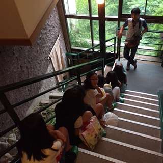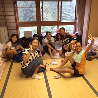 お風呂タイムです。中は写せないので、順番待ちと部屋での様子をお伝えします。もう少しで夕食となります!