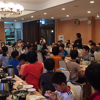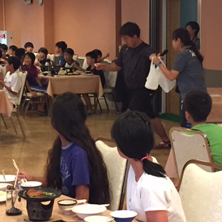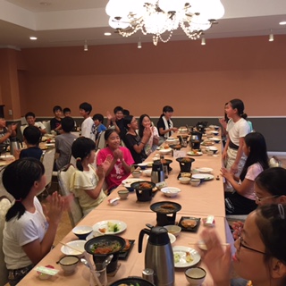 夕食は終わったのですが、この後の肝試しペアを決めるのに大盛り上がり。拍手が起きたり、顔が真っ赤になったり。さぁ30分後、手をつないでスタート!