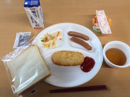 今、朝食が終わりました。一般宿泊の方はバイキング形式で食べられていましたが、教員は実際の移動教室で食べるメニューをいただきました。